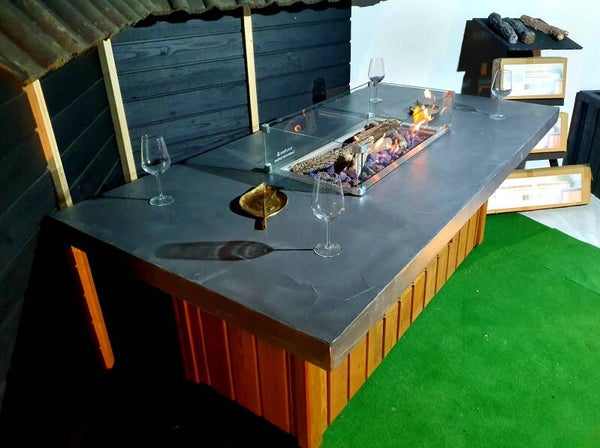 Standaard wordt deze vuurtafel geleverd zonder glasombouw. Een glasombouw maakt uw vuurtafel echter wel completer en veiliger